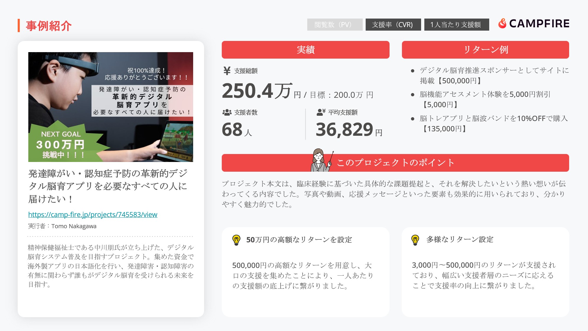 | CAMPFIRE:18.7% | ¥374,000 | ¥374,000 | ¥374,000 |